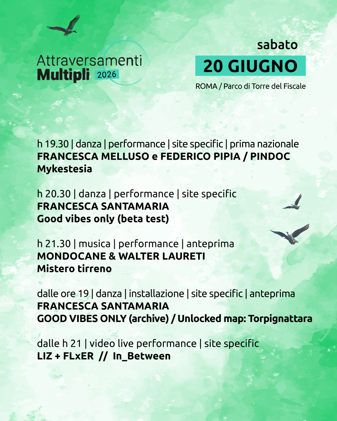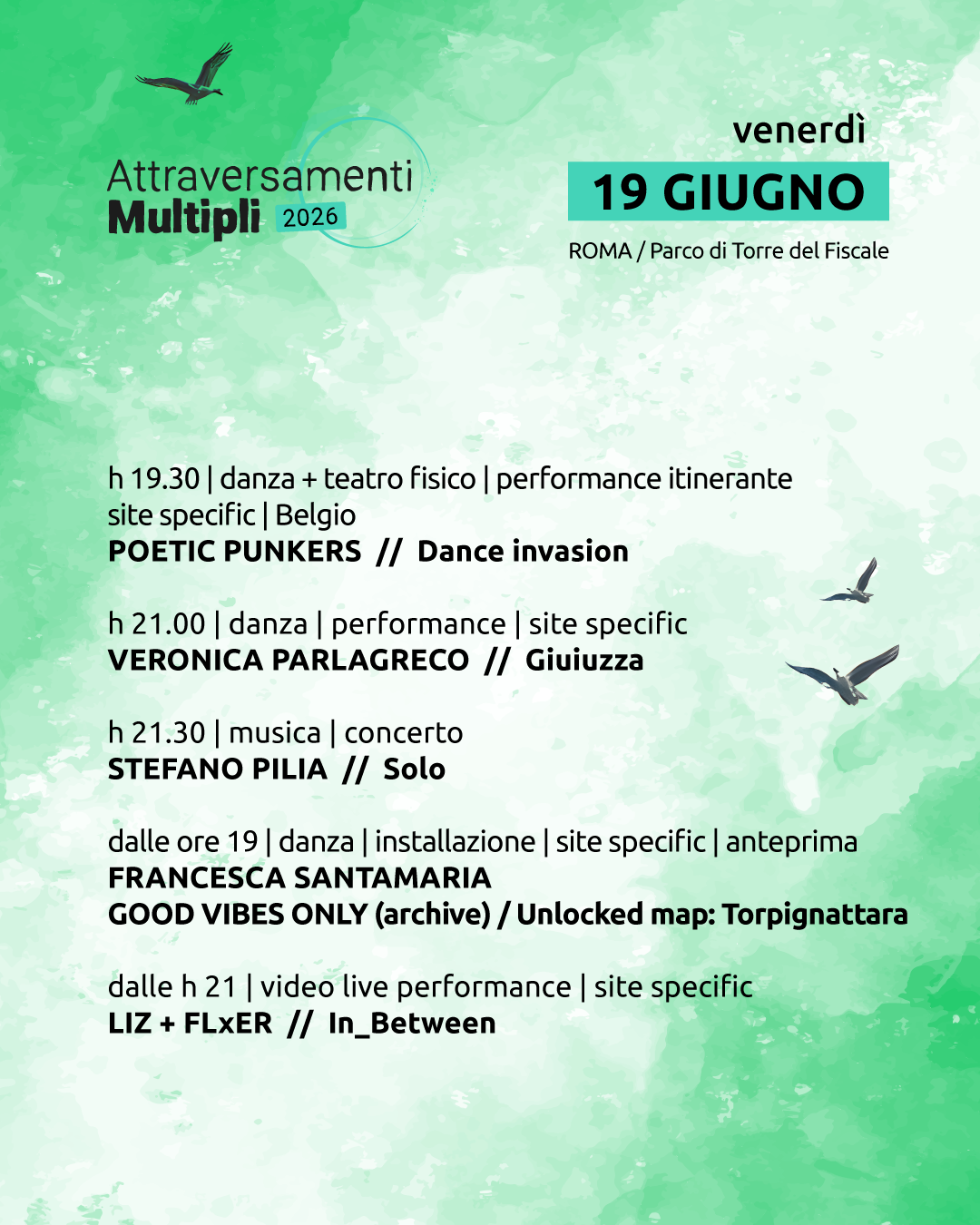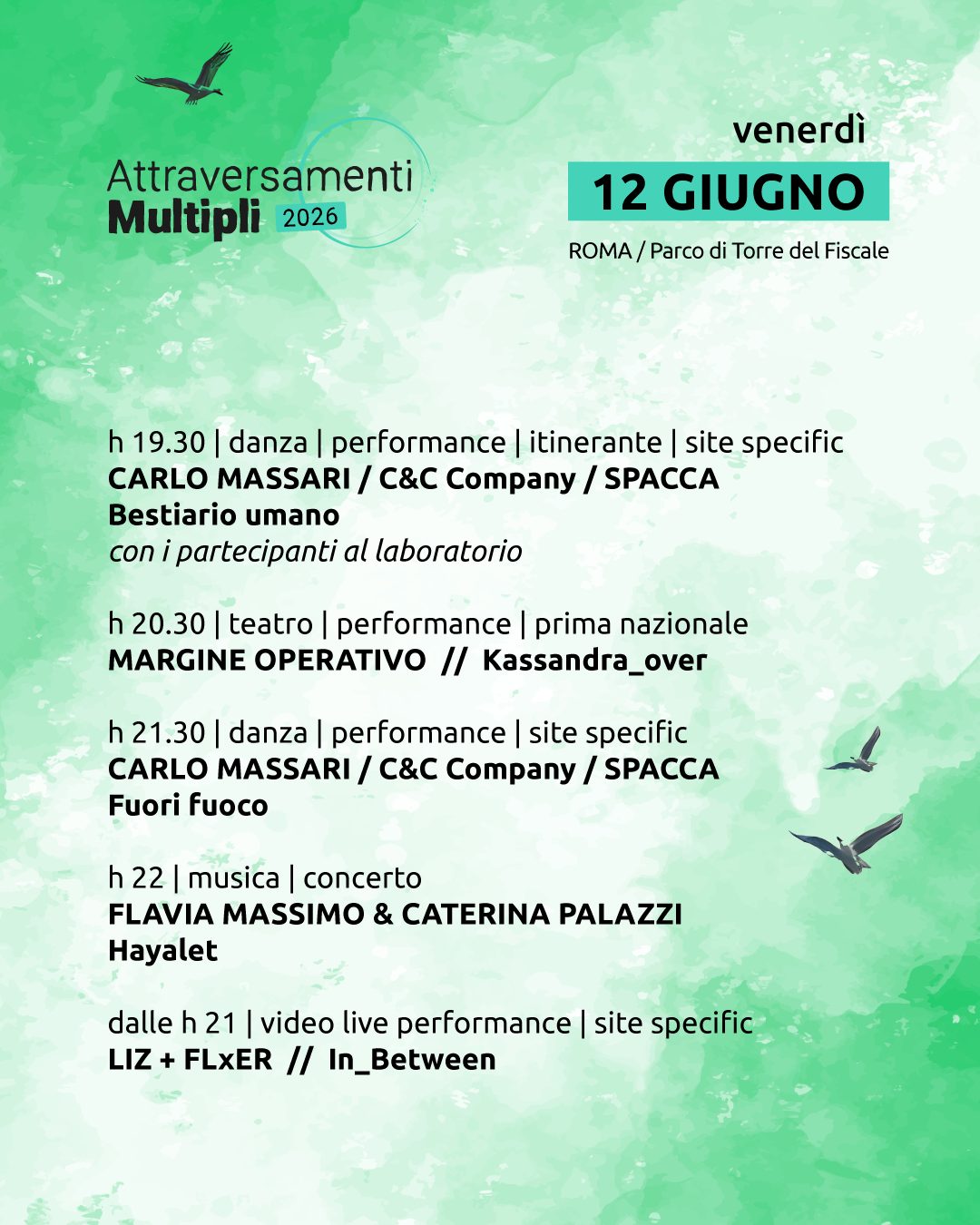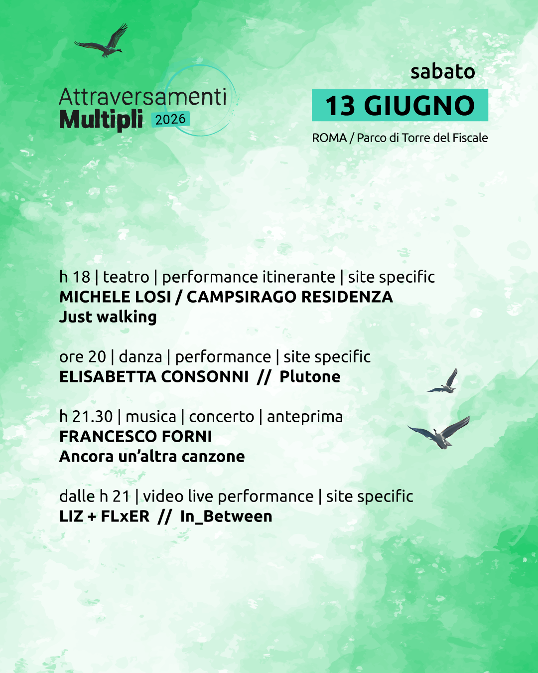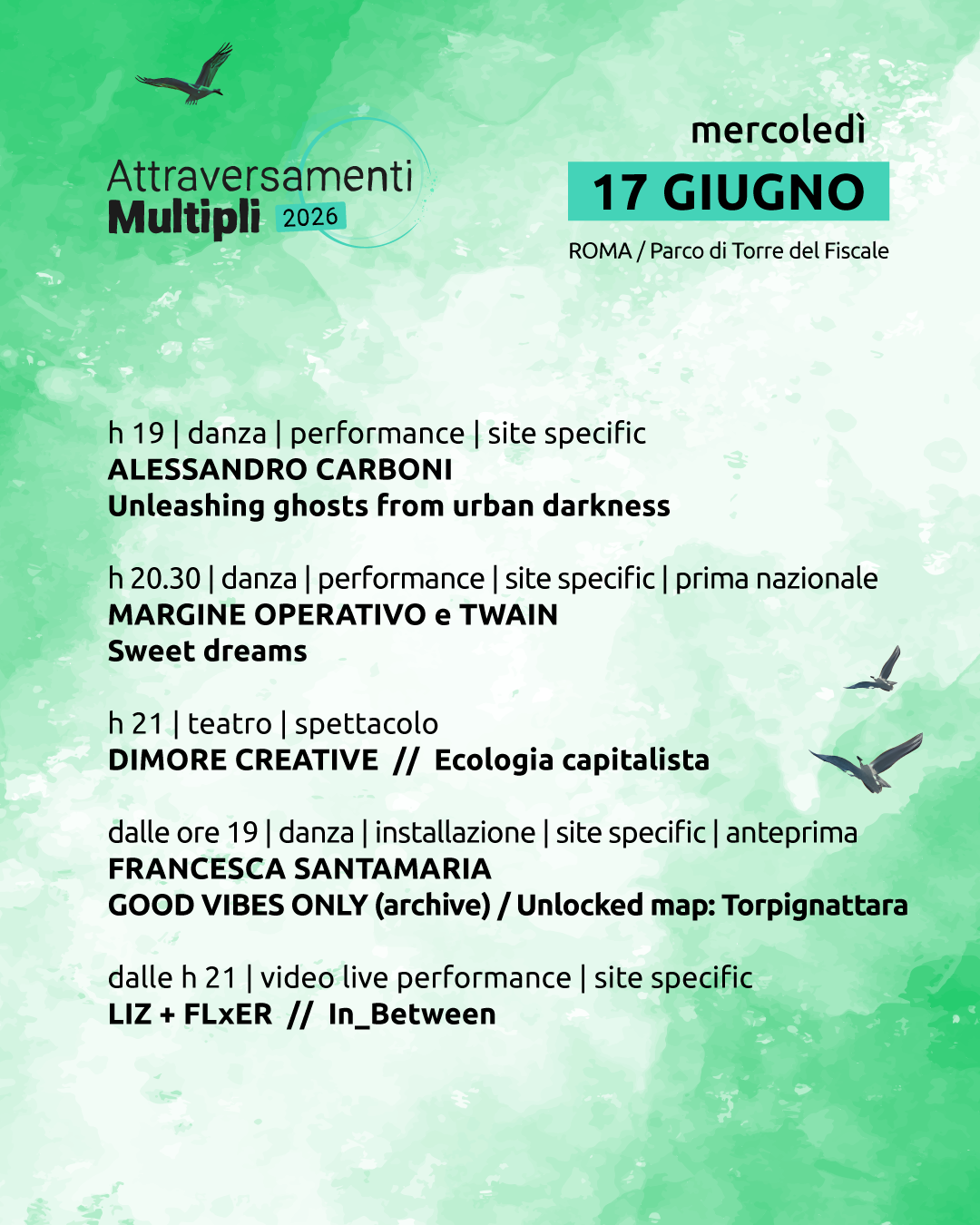 Il festival multidisciplinare Attraversamenti Multipli, curato da Margine Operativo, si interroga sulle relazioni tra le arti performative contemporanee e il presente proponendo spettacoli e site specific nei paesaggi naturali e urbani.